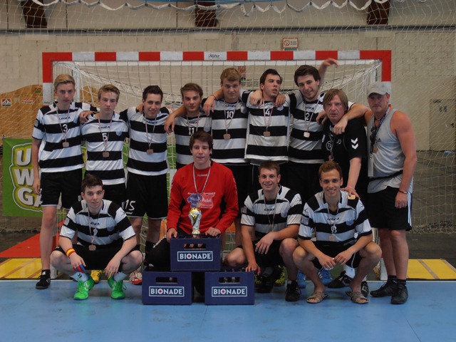 Um 12.30 Uhr war es dann soweit. Anpfiff im Spiel gegen den Schweizer Erstligst Seen Tigers. Beide Mannschaften merkte man an, den Pokal und die Medaillen unbedingt gewinnen zu wollen. Es begann ein offener Schlagabtausch. Die TSV-Jungs konnten mit gut vorgetragenen Spielzügen und schnellen Tempospiel überzeugen. Mittespieler Maksim Lysitin setzte seine Nebenleute wie Mile Hartmann und Markus Glaubert immer wieder gut in Szene. Beide Halbspieler brachten den TSV mit jeweils einem Doppelschlag in Führung. Zur Halbzeit stand es 9-8 für Münnerstadt. Zu Beginn der zweiten Halbzeit kam der große Auftritt unseres Spaniers Salvatore.