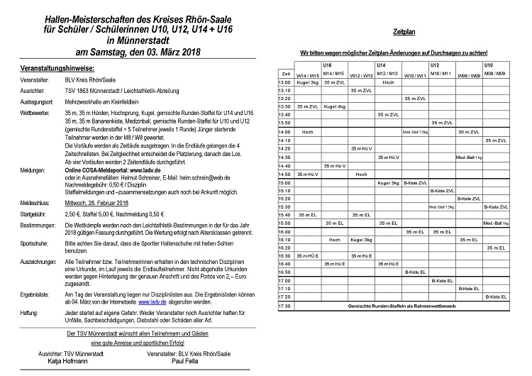Hallenkreismeisterschaft am 3. März in der Mehrzweckhalle
