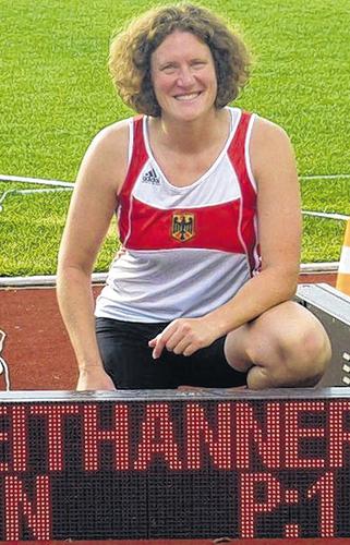 Martina Greithanner vom TSV Münnerstadt gelang bei ihrer internationalen Premiere in der Seniorenklasse gleich der große Wurf. Bei der Leichtathletik-Europameisterschaft in Zittau gewann die Athletin vom TSV Münnerstadt Gold im Diskuswurf der Altersklasse W35 und dazu auch noch Silber im Kugelstoßen.