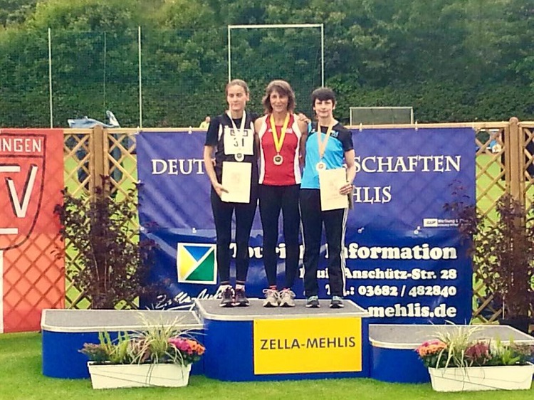 Diesmal holte Iris bei der Senioren-DM in Zella-Mehlis sogar den Titel im Mehrkampf der W50. Nach fünf Disziplinen (100m, Hochsprung, Kugelstoßen, Weitsprung und 800m) standen am Ende 3.597 Punkte auf der Ergebnisliste - die souveräne Goldmedaille!