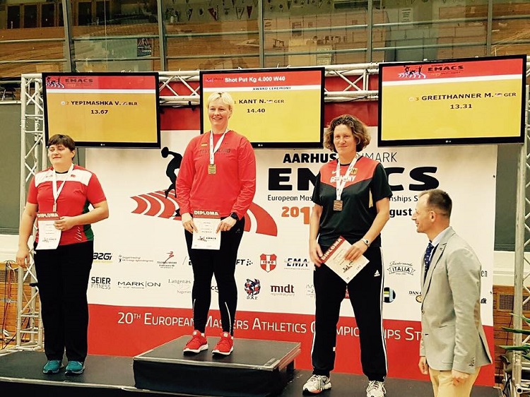 Nachdem Martina am Wochenende zuvor bereits in der Aktivenklasse mitmischte und bei der Bayerischen Meisterschaft in Augsburg gegen teils zwanzig Jahre jüngere Konkurrenz zweimal Edelmetall holte (Silber und Bronze), konnte sie die starken Leistungen im dänischen Aarhus noch krönen.
