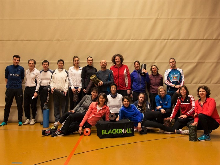Anhand der verschiedenen Blackroll-Arten konnte jeder Teilnehmer am eigenen Körper die unterschiedlichen Einsatzgebiete ausgiebig testen, einzelne Muskeln mobilisieren und "Schlackstoffe" abtransportieren.