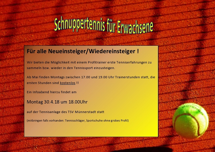 Alle, die einem Verein aus Münnerstadt angehören und nicht in einer Tennismannschaft aktiv spielen bzw. gemeldet sind !