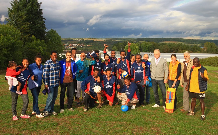 Am Montag, den 07.09.2015, übergaben wir unseren Münnerstädtern Asylbewerbern einen Trikotsatz, der für einige Jungs gleich beim gemeinsamen Kicken Verwendung fand.