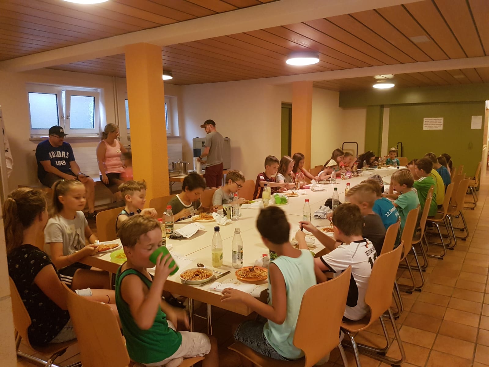 Los ging es am Samstag mit Kennenlernspielen, bevor die Kids gemeinsam eine bunte Flagge gestalten durften. Natürlich konnte auch in einige Sportarten unseres TSV hineingeschnuppert werden. Die Kids spielten Handball, Fußball und durften sich in Disziplinen der Leichtathletik versuchen. Am Abend ging es auf Schnitzeljagd, bevor der Tag mit einer gruseligen Nachtwanderung abgeschlossen wurde. Nach einer gemeinsamen Übernachtung in der Mehrzweckhalle ging es am Sonntag sportlich weiter. Auf dem Programm standen Basketballspielen und sogar Rhönradturnen. Zum Abschluss konnten sich die Kids bei Wasserspielen auf dem Sportplatz nochmals richtig auspowern.