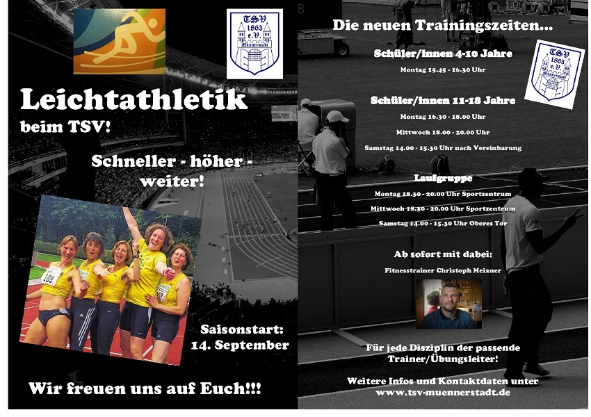 Alle Trainingszeiten sind dem angefügten Flyer zu entnehmen.