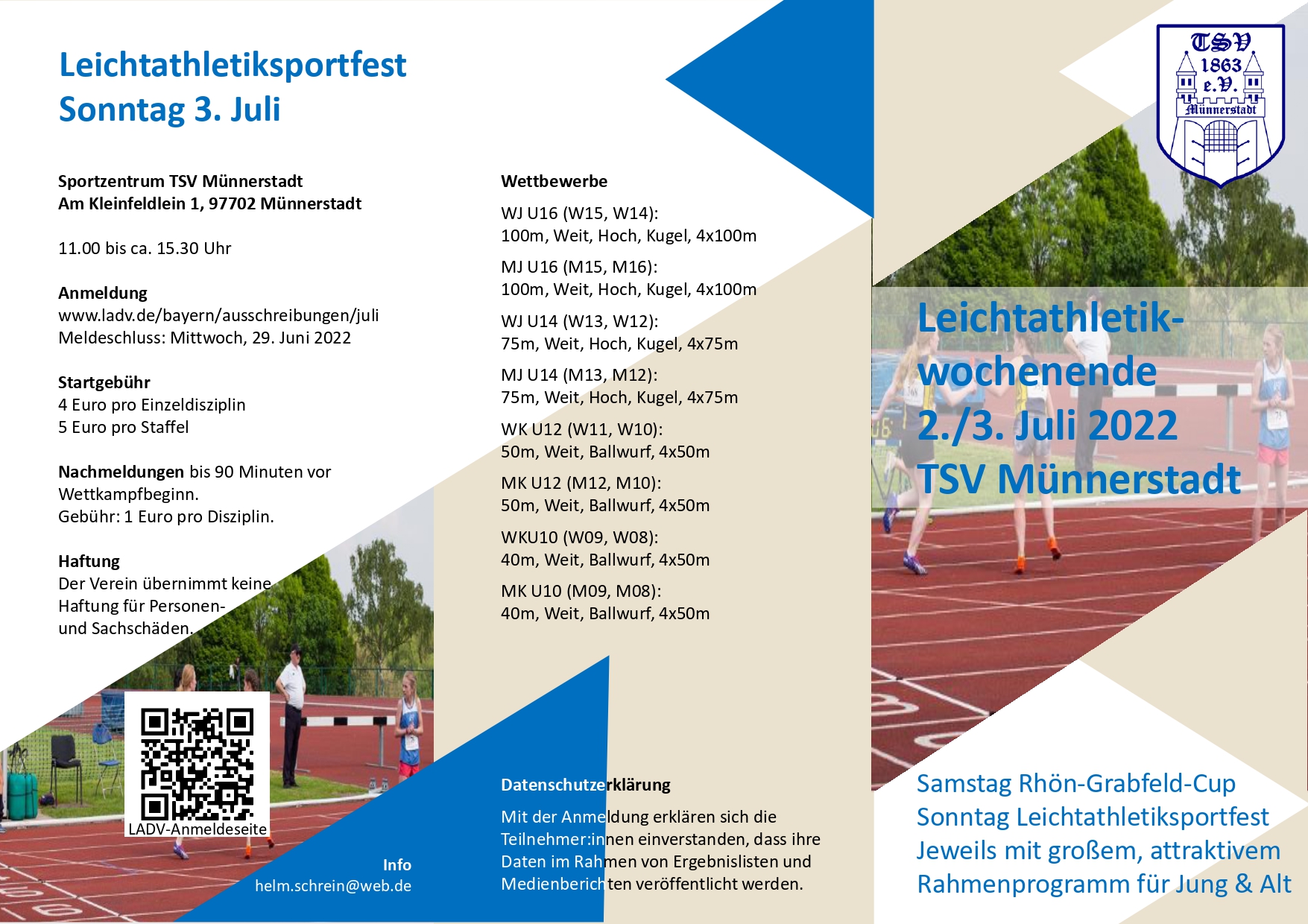 Am Wochenende vom 1. - 3. Juli durften wir die frisch renovierten Sportanlagen - dank des riesigen Engagements hunderter Ehrenamtlicher - gebührend einweihen. Das vielfältige Sportprogramm all unserer Abteilungen am Samstag und Sonntag konnte sich wahrlich sehen lassen. Der Rhön-Grabfeld-Cup unserer Leichtathleten anlässlich der Einweihung der brandneuen Tartanbahn war nur ein Highlight von vielen. Ob Tennis, Fußball, Football, Beachvolleyball, Handball, Basketball oder Tischtennis - da war für jede und jeden etwas dabei. Besonders beim Schülersportfest am Sonntag wusste unser TSV-Leichtathletik-Nachwuchs eindrucksvoll zu überzeugen. Emilia Zeitz, Unterfränkische Meisterin über 100 Meter der W15, verbesserte ihre persönliche Bestzeit über diese Distanz auf starke 13,15 Sekunden und konnte ihren Bestwert im Hochsprung um ganze fünf Zentimeter auf 1,52 Meter hochschrauben - genauso wie die Top-Leistungen ihrer Teamkolleginnen Lina Rößler, Anne Federlein, Lina Johannes, Maren Weigand und vielen mehr sind das beste Vorzeichen für die bald anstehende Bayerische Meisterschaft. Ganz, ganz vielen Dank euch allen für dieses schöne Wochenende!!!