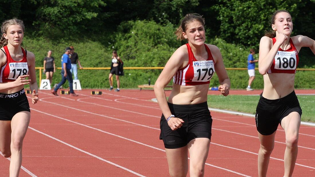 Schlussläuferin Emilia Zeitz aus Bad Königshofen gewann dann das Finale der W 15 über 100 Meter. Gegenwind verhinderte da allerdings eine schnellere Zeit als die gestoppten 13,71 Sekunden. Teamkollegin Lina Rößler wurde dahinter in 14,12 Sekunden Zweite. Über die 80 Meter Hürden der W 15 unterboten Anna Federlein als Zweite in 13,43 Sekunden und Lina Rößler als Dritte in 13,51 Sekunden ebenfalls die B-Norm zur bayerischen U 16-Meisterschaft.
